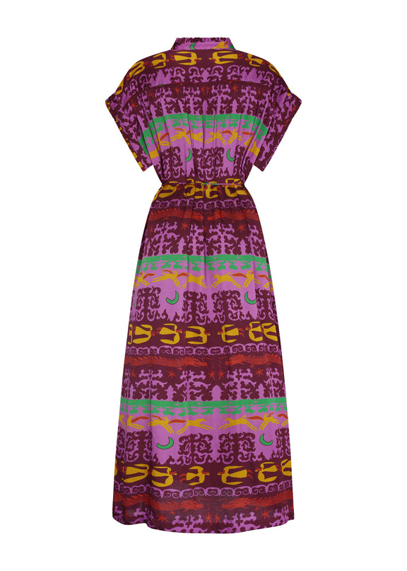 The valerie kaftan is versatile and quintessential Carolina K! Valerie features a gorgeous dragon horse pattern. Comes with a matching belt to cinch in at the waist. Materials & Specs: