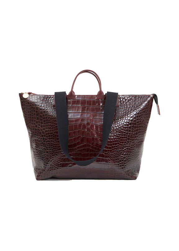 Perfectly designed to slip over your suitcase, the Clare V. Le zip sac is your travel go-to bag. We adore this bordeaux textured colorway! Materials & Specs:
