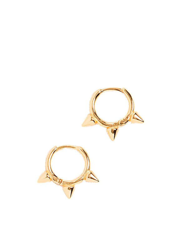Add this pair of edgy gold revolver huggies to your everyday stack! Materials & Specs: