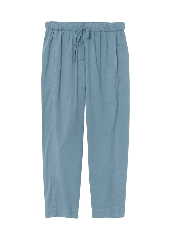 The draper pant is made from lightweight woven cotton poplin fabrication for a lived-in look and feel. An easy pull-on pant with a drawstring waist and side seam pockets in this gorgeous steely blue colorway. Pair with the channing shirt for the easiest cool-girl fit. Materials & Specs: